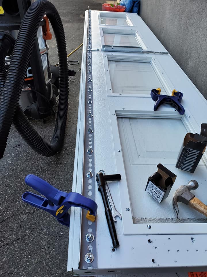 원래 garage door 를 바꾸는 경우는 아주 건물이 오래되어 한 30년 이상이 지나지 않는 이상은 아주 적은 경우인 것 같습니다. 저 같은 경우는 와이프가 살짝 문을 들이 받는 바람에 처음에는 아주 작게 damage가 발생을 했었는데, 점점 이 damage가 커져서 문의 약간 휘어지게 되는 것을 보게 되었습니다. 아래를 치는 바람에 제일 아랫쪽과 그 위쪽이 문제가 생겼는데, 계속 그대로 두면, 점점 더 많이 휘어지면서 결국 큰 문제가 될 것 같아. 미리 교체를 하는 것이 나릉 것 같아서 근처 업체에 알아보는 약 1700 CAD 정도 하더군요. 웬만하면 그냥 업체에 맡길려고 했는데, home depot에 보니 싼 것은 약 500CAD 정도 하더군요. 그래서, 유투브도 보고 인터넷도 검색해 보니. 일반인들이 하는 경우도 많은 것 같아 혼자서 해 보기로 결심을 했습니다. 아래 창문이 있는 것으로 바꾸었는데, 전에 garage 가 햇볕이 안들어 와서 좀 축축한 느낌이 있었는데 창문이 있으니 훨씬 나은 것 같습니다. 다만, 문제는 창문으로 인해 근처 구조가 너무 약해서, 조금만 힘을 가해도 크랙이 생기는 문제가 있더군요. 그래서, 결국 L자 steel 보강재를 사서 보강까지 하게 되었습니다.