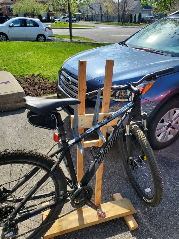 작년에 자전거를 사서 보니깐, 체인에 오일을 바른다던지, 기어를 체크할때 사용할 수리용 스탠드가 필요했었습니다. 인터넷에서 그냥 하나 살까 하다가, 그렇게 많이 쓰는 것도 아닌데, 굳이 사기에는 좀 그런것 같아서 어떻게 만들어 볼 수 없을까 궁리만 하고 있었는데, 오늘 그냥 후다닥 대충 하나 만들어 봤습니다. 창고를 뒤져보니, 이런저런 나무들이 나와서, 대충 스크류로 나무에 박아서 서로 연결 했습니다. 만들고 나니, 중심도 잘 안 맞고, 스크류 하나만 박아 놓은게 약한지 약간 불안하긴 한데, 일단 천천히 쓰면서 수리하면 될 것 같아서, 임시로 써 보기로 했습니다.