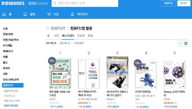 리디북스의 컴퓨터/앱 활용 분야에 제 책이 3위로 되어 있네요.